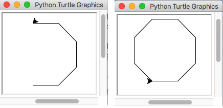 turtle.left(45) # an octagon needs turns of 45 degrees